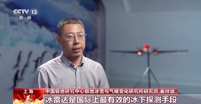 中国极地研究中心极地冰雪与气候变化研究所研究员 崔祥斌:冰雷达是国际上最有效的冰下探测手段,类似于医院的CT,能够对冰盖进行从表面到底部的精确扫描和诊断。