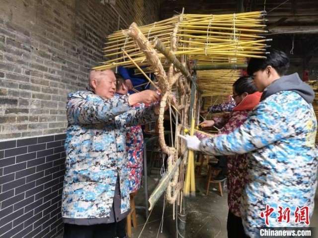 2月初,春节前夕,汝城县当地民众一起制作香火龙。 汝城县供图
