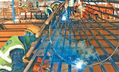 工人在沪苏嘉城际铁路上海青浦朱家角段现场施工。沪苏嘉城际铁路建成后,可加强示范区内及与各地主城区间的快速联通。