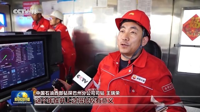 中国石油西部钻探巴州分公司司钻 王瑞荣:这个年在井上过得比较有意义,因为每打一米进尺就是一个新的亚洲纪录在诞生。自己参与到其中,感觉挺自豪的。