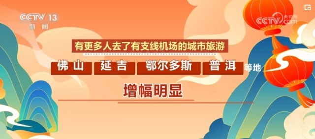 2024年春节,有更多人去了有支线机场的城市旅游,去往这些城市的机票预订量同比增长近两倍,其中,佛山、延吉、鄂尔多斯、普洱等地的增幅更加明显。在这个春节,更多人选择远离大城市的喧嚣,体验充满地方特色的别样年味儿。