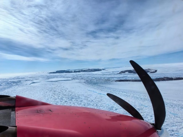 “雪鹰601”飞越冰盖边缘进行航空调查。(新华社发)