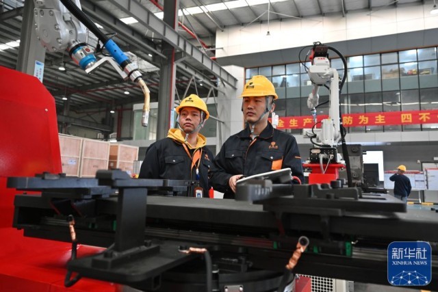 2月19日,宁德思客琦智能装备有限公司工作人员在调试机器人自动化设备。