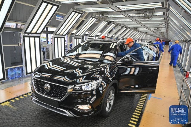 2月19日,在上汽集团乘用车福建宁德基地总装车间内,工作人员在检查下线车辆。