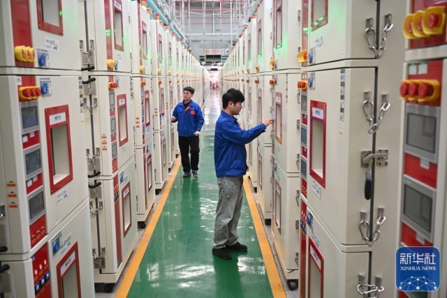 2月19日,宁德新能先锋检测科技有限公司工作人员在电芯实验室查看设备运行情况。