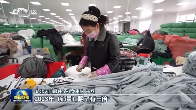 湖北天门服装企业负责人 于兵:2023年(销量)翻了有三倍,确实没想到(销量)会爆发得这么厉害。