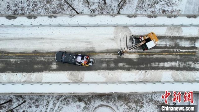 湖南益阳市南县境内普降大雪。南县交通运输部门在国省道、城区主要道路部署6处抢通保畅力量,连续24小时出动人员50人次、车辆42台次疏导交通,救援服务货车20多台次,确保人民群众安全出行,生产生活物资运输畅通。