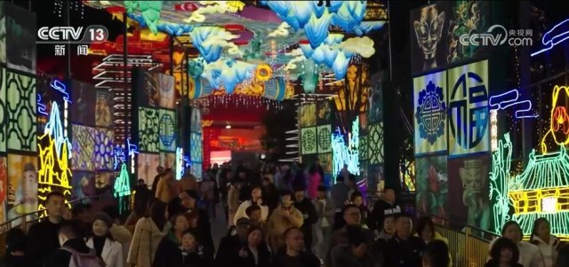 在浙江横店影视城,眼前的22组大灯流光溢彩、美轮美奂。这个春节,景区引入生成式人工智能新技术,让游客与诗仙李白现场同框。景区还打出“数智沉浸游浙里”主题,以传统花灯融合视觉技术,推出“元宇宙灯会”。春节期间,每天吸引游客超3万人次。
