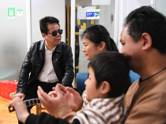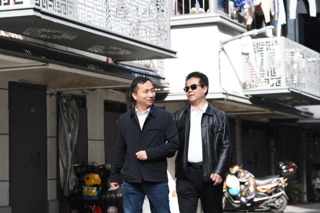 王永澄(左一)在福州市鼓楼区红墙巷小区调研盲人家庭子女入学及保障房入住情况(2月18日摄)。