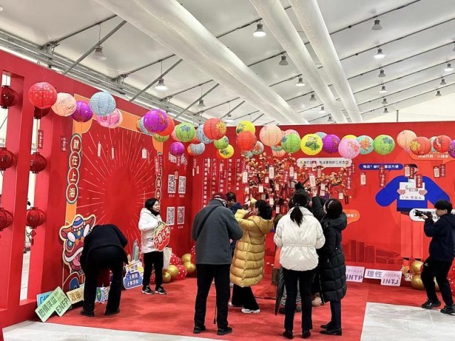 2月24日,在“乐业上海优+”行动——上海市春季促进就业综合性大型招聘会上,来参会的人参加“乐业打卡”活动。中青报·中青网记者王一迪/摄