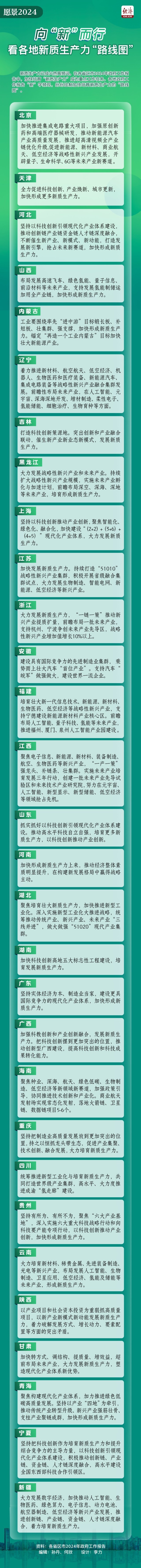 编者按:新质生产力已成火热高频词。在各省区市2024年政府工作报告中,加快培育“新质生产力”成为重点工作任务。各地政府工作报告“新”字频现,纷纷绘制加快培育新质生产力的“路线图”。