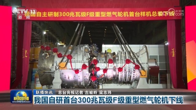 我国自研首台300兆瓦级F级重型燃气轮机下线