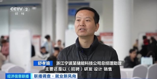 浙江宁波某储能科技公司总经理助理 舒孝瑜:主要招聘研发、设计、销售、后端人才,最高的一个岗位待遇年薪在40万元以上。