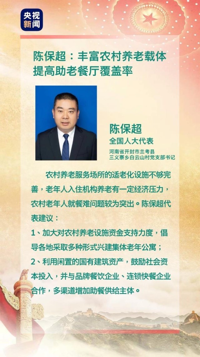 近年来,农村留守老年人日益增多,农村老年人养老、就餐成为亟待破解的养老问题。两会召开在即,全国人大代表、河南省开封市兰考县三义寨乡白云山村党支部书记陈保超带来了《关于深入推进农村养老服务体系建设的建议》。