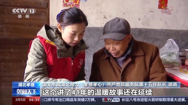 国家电网湖北电力(孝感孝心)共产党员服务队第十五任队长 胡萌:从1983年的12名抄表工 到如今的329名队员,服务队在帮扶孤寡老人中不断壮大,累计帮扶孤寡老人342人,这个讲了41年的温暖故事还在延续。