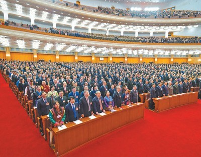 15时,大会开幕,全体起立,高唱中华人民共和国国歌。