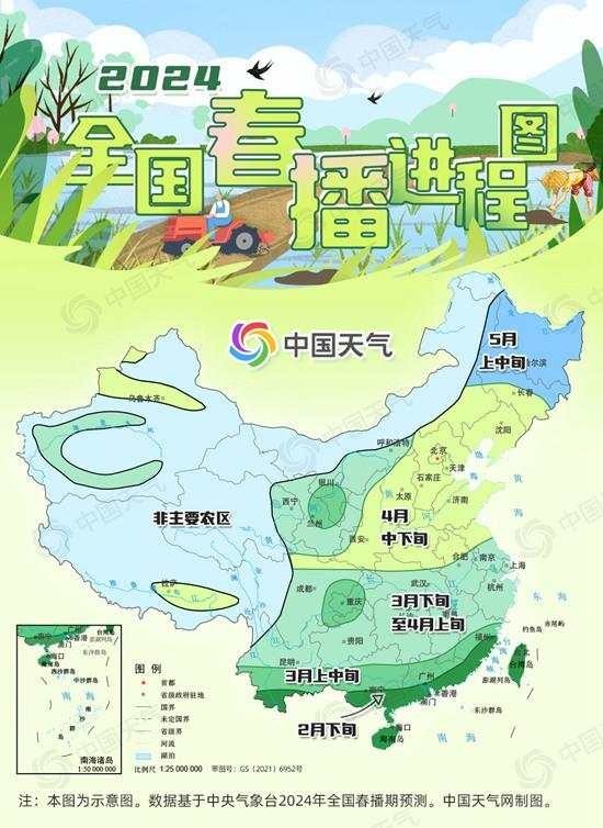 到了惊蛰时节,我国春耕春播工作已陆续展开,从华南到西北,田间地头逐渐忙碌了起来。一年之计在于春,春耕春播工作对于全年粮食丰收至关重要。一起跟随2024全国春播进程图和春耕春播天气地图看看各地春播何时展开,近期春播天气如何。