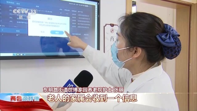 东明路街道世博家园养老院护士 张丽:伯伯这个药我们药房里没有,它需要外面配,现在只剩下两天了。所以我们就给他推送过了,老人的家属会收到信息,就会及时去配药补过来给我们。