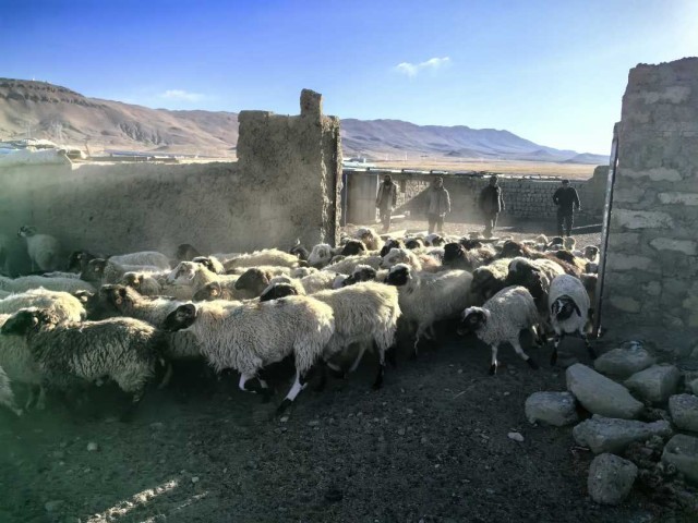 太阳翻过雪山,洒满西藏日喀则市岗巴县岗巴镇雪村的大地时,穿着羊皮袍子、皮肤黝黑的扎西多杰准时打开了圈门。随着此起彼伏的“咩咩咩”声,羊群就像开闸的洪水般倾泻而出,踏出滚滚尘烟。