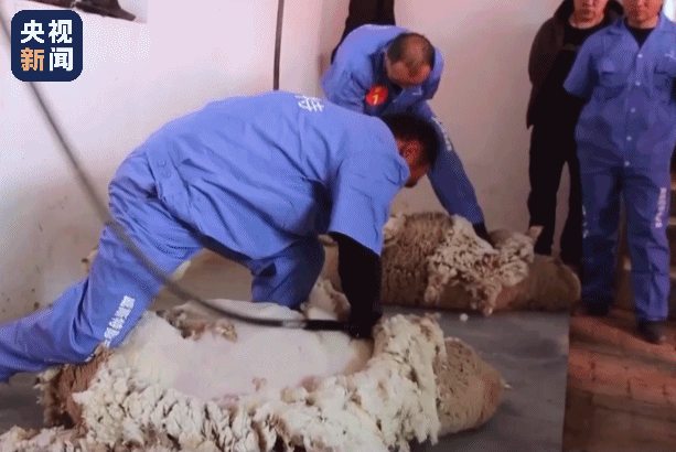 △新疆拜城2023年的机械剪羊毛大赛。(:“羊羊我啊,为了这场比赛付出了太多”)