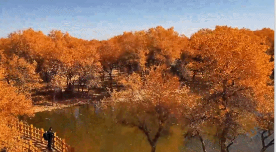 △新疆洛浦胡杨林(这颜色与树叶纹鞍毯“梦幻联动”了)