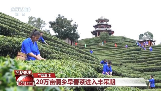 新芽吐翠满眼绿,春意正浓茶飘香。这两天,在广西柳州三江侗族自治县,20多万亩的早春茶进入丰采期。一行行错落有致的茶树长势喜人,茶农们在万亩茶山上抢抓时令,采摘早春茶。