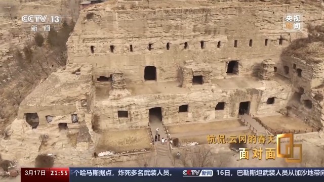 3月的山西大同,乍暖还寒,到访云冈石窟的游客依旧热情不减。跟随云冈研究院院长杭侃,我们一起回望这段跨越1500多年的历史。云冈石窟的开凿始于北魏时期,它是佛教传入中国后,第一次以皇家的力量主持开凿的石窟群,有“真容巨壮”“穷诸巧丽”之誉。云冈石窟现存主要洞窟45个,附属洞窟209个,大小造像5.9万余尊,2001年被联合国列入世界遗产名录。第20窟露天大佛是云冈石窟的标志性景观,然而,我们并没有在这里过多停留,杭侃把我们带到了他更感兴趣的另一个地方。