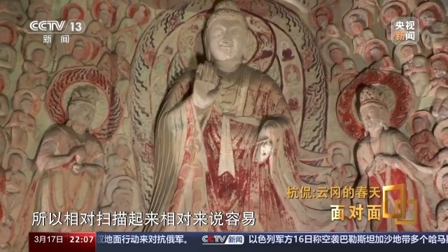 杭侃:因为敦煌起步早,到现在都是我们学习的榜样。但是敦煌它正是因为起步早,可能我们现在技术迭代比较快。所以从技术迭代的角度来说我们并不落后。我们现在的精度已经到了0.03毫米了,但是那样需要的算力是非常大的。我们这有一个超算中心,超算中心是什么概念?就是你看到的一个洞窟的运算能力,要和一个中等城市的,我们叫智慧城市,那个量是一样的。云冈它是一个皇家工程,所以那个像都特别大,敦煌它很多洞窟比较小,另外敦煌它的壁画非常精彩,但是壁画是二维的,所以相对扫描起来相对来说容易,但是我们这个地方它一个是大,第二个就是雕刻的手法多。所以像你看到的第六窟,我们到现在都没有拿得出来,大家都能认可的采集方案。