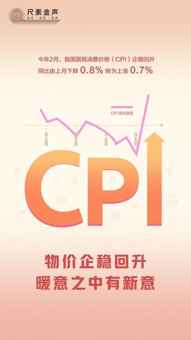 国家统计局发布的最新数据显示,今年2月,我国居民消费价格(CPI)企稳回升,同比由上月下降0.8%转为上涨0.7%,其中扣除食品和能源价格的核心CPI涨幅为2022年2月以来最高。