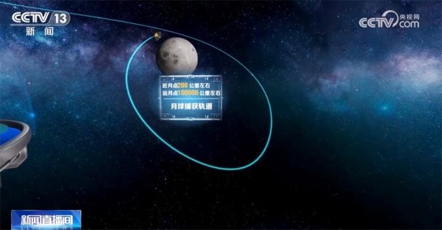 现在,鹊桥二号正在刹车!看,鹊桥二号被月球引力捕获了!现在,它顺利进入了离月球最近点200公里、最远点10万公里左右的月球轨道。