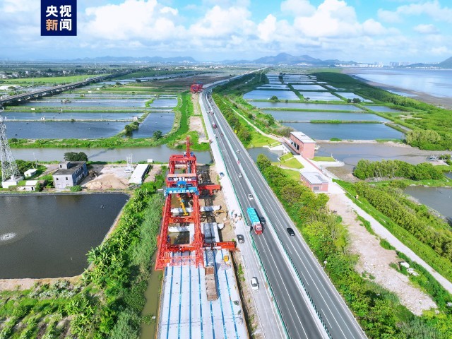 据介绍,在桥梁施工上,深汕西改扩建项目通过不修便道、不搭栈桥等工况下桥梁智能建造的新模式,研发出桩梁一体化智能建造装备与技术,打造全球首台桩梁一体化智能造桥装备,构建出一套“桩柱一体”式管桩基础、盖梁、双T梁以及防撞护栏的全预制拼装桥梁新型结构体系,还融入了北斗定位系统和自动识别环形智能焊接、三维地质建模技术等,多措并举实现桥梁2.5天/跨快速建造。