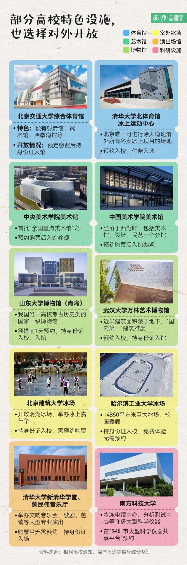 如果想逛博物馆看展,高校依靠专业资源打造的各类展馆,包括语言、水产、中草药,民族、玩具、古生物,很有特色。比如,清华大学艺术博物馆和山东大学博物馆甚至位列国家一级博物馆。