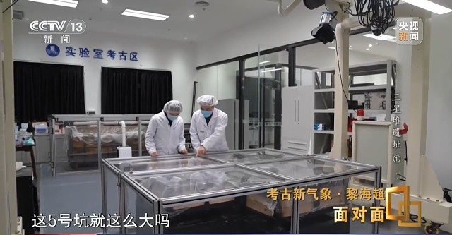 3年前,在三星堆为考古发掘搭建的方舱中,3、4、7、8号坑的发掘在2022年完成,而5号坑和6号坑因各自的复杂情况,被整体搬迁到实验室,开展实验室考古。