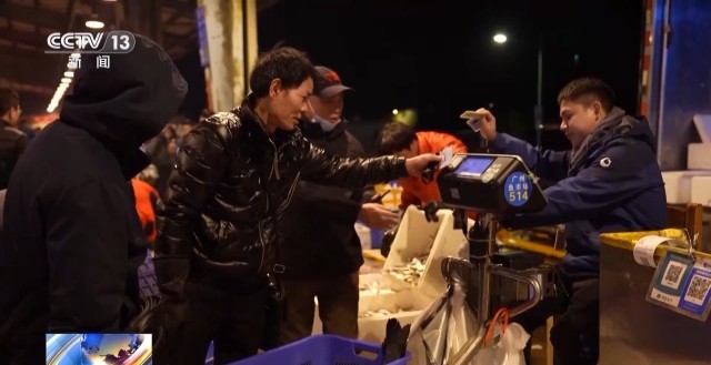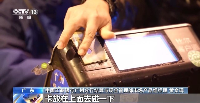 中国工商银行广州分行结算与现金管理部市场产品组经理 黄文瑀:卡放在上面去碰一下,做一个身份识别,然后再把商品放在秤上面去称重。可以看到整个交易的总金额是多少,实时同步到我们这边,去完成买卖双方账户资金的转账。