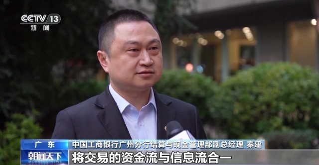 中国工商银行广州分行结算与现金管理部副总经理 秦建:通过对结算金融赋能,将交易的资金流与信息流合一,同时我们也提供了更具针对性的便民服务,让老百姓感受到便捷化。