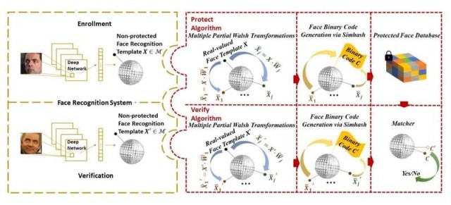 课题组研究出的人脸模板保护策略示意图。西安电子科技大学/供图
