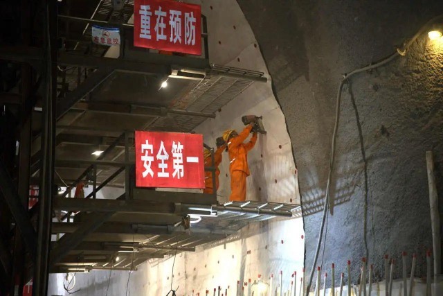 白马山隧道位于重庆市武隆区长坝镇,全长13407米,设计时速350公里,是全线重难点控制性工程。该隧道为Ⅰ级高风险隧道,受富水洼地、断层、软岩等不良地质影响,施工难度大。