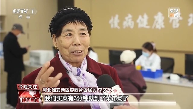河北雄安新区容西片区居民 李文芝:我们买菜,有3分钟就到了菜市场了,挺好的。送孙子也挺近,坐一站(公交车)就到了学校这儿了,特别方便。