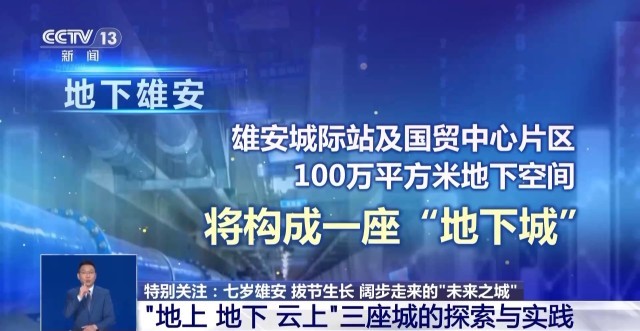地下雄安,水、电、热、气等管线都“住进”综合管廊;雄安城际站及国贸中心片区100万平方米地下空间将构成一座“地下城”。高铁、地铁在地下可平层换乘,旅客“出站即入城”;“5G+北斗”定位导航技术,为容东片区超过20万平方米地下停车场提供导航。