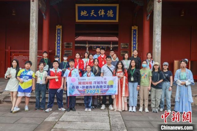 图为“同祖同根·萍城有爱”香港青年内地交流团成员和萍乡市本地学生在萍乡孔庙前合影。刘力鑫摄