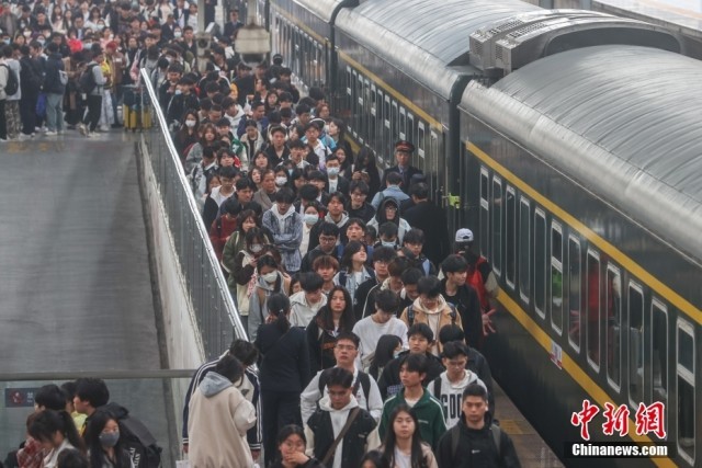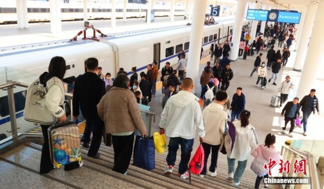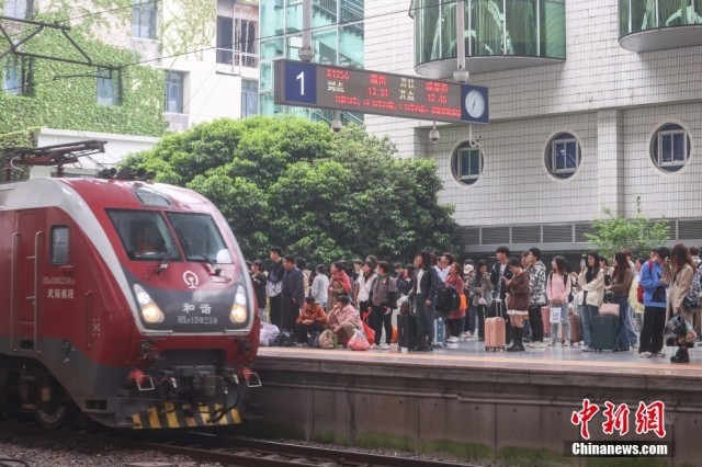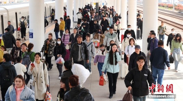 4月6日,清明假期最后一天,中国国家铁路集团有限公司发布的数据显示,当日全国铁路迎来清明假期返程客流高峰,预计发送旅客1790万人次,计划加开旅客列车1163列。图为江西南昌站,众多旅客从站台上走过。