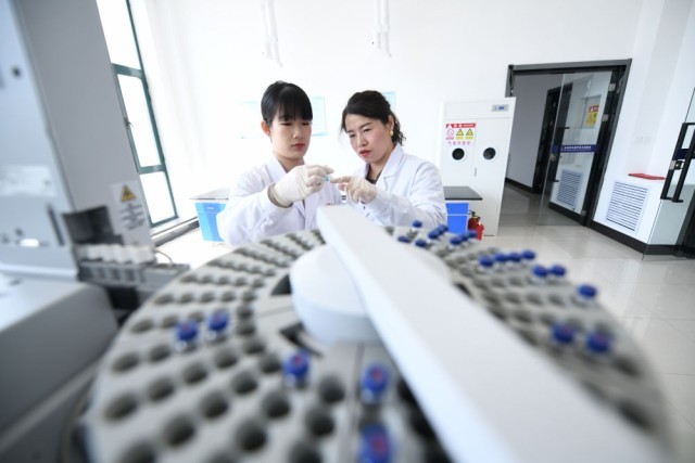 2024年4月3日,在黑龙江北大荒农业股份有限公司友谊分公司黑土地保护实验室,工作人员在测量土壤有机氯、有机磷农药残留数值。