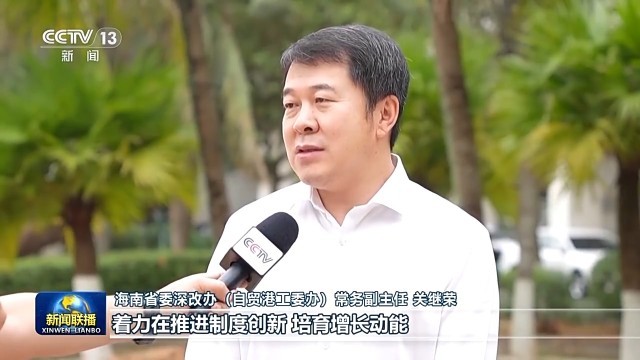 海南省委深改办(自贸港工委办)常务副主任 关继荣:海南牢记习近平总书记的殷切嘱托,坚定不移落实开放为先战略,着力在推进制度创新、培育增长动能、构建全面开放新格局等方面取得新突破,加快建设开放包容、合作共赢的自由贸易港,把海南自由贸易港打造成展示中国风范的靓丽名片。