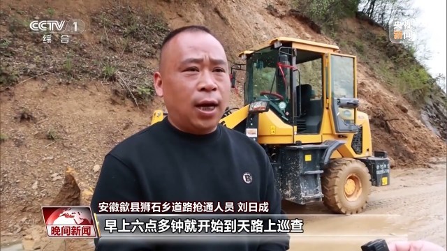 安徽歙县狮石乡道路抢通人员 刘日成:早上六点多钟就开始到天路上巡查,来往游客车辆挺多的,已经恢复正常通行。