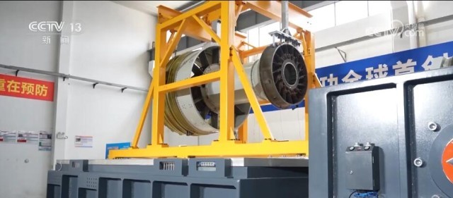 眼前这台正在保持高频振动的设备在对一台近3吨重的飞机发动机进行振动试验。在此之前,没有设备可以完成这个重量等级的整机振动试验。
