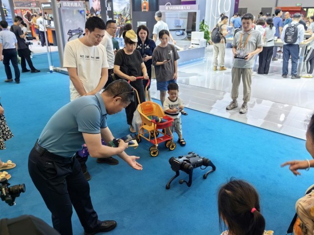 在科大讯飞展区,智能录音笔、翻译机、办公本、AI扫拖机器人等多款搭载讯飞星火大模型的产品集中展出,引来观众驻足围观,有人更是按“展”索“品”,当场上网订购。