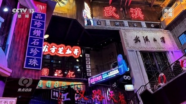武汉梦时代是全球最大的纯商业体,把商业文化旅游体育很多业态融合在一起,日均客流量有10万人次,在它的地下一层,是一个可以沉浸式体验的美食街区楚风汉味。这里多方位多场景还原了老武汉码头的文化与情怀,是一种怀旧式的国潮风。