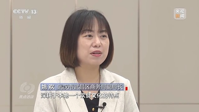 武汉市武昌区商务局副局长 姚欢:“美食街区的打造一定要深耕于本地饮食文化特点;第二是要坚持错位发展,吸引不同的消费群体。”