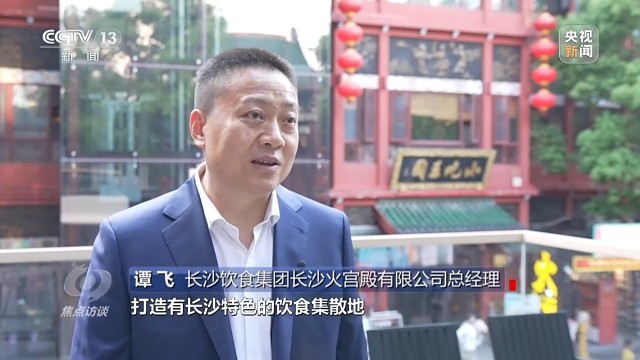 长沙饮食集团长沙火宫殿有限公司总经理 谭飞:“政府当初的提法是依托火宫殿打造有长沙特色的饮食集散地,竞争太激烈了。我们是先行者,大家眼睛都盯着我们,我们推出新产品没有两天周边都有了。”