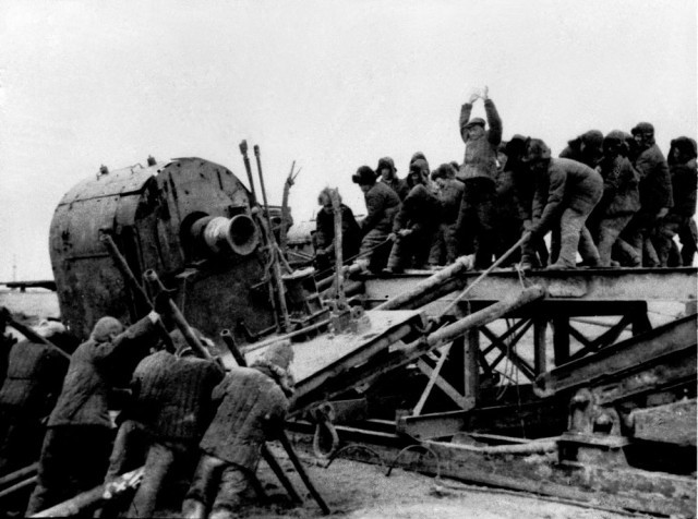 他们用滚杠加撬杠